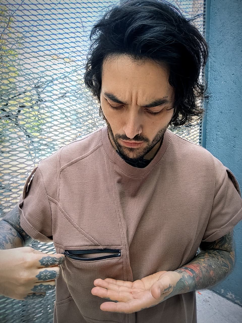 - Camiseta silueta oversize con cortes en la mitad del delantero