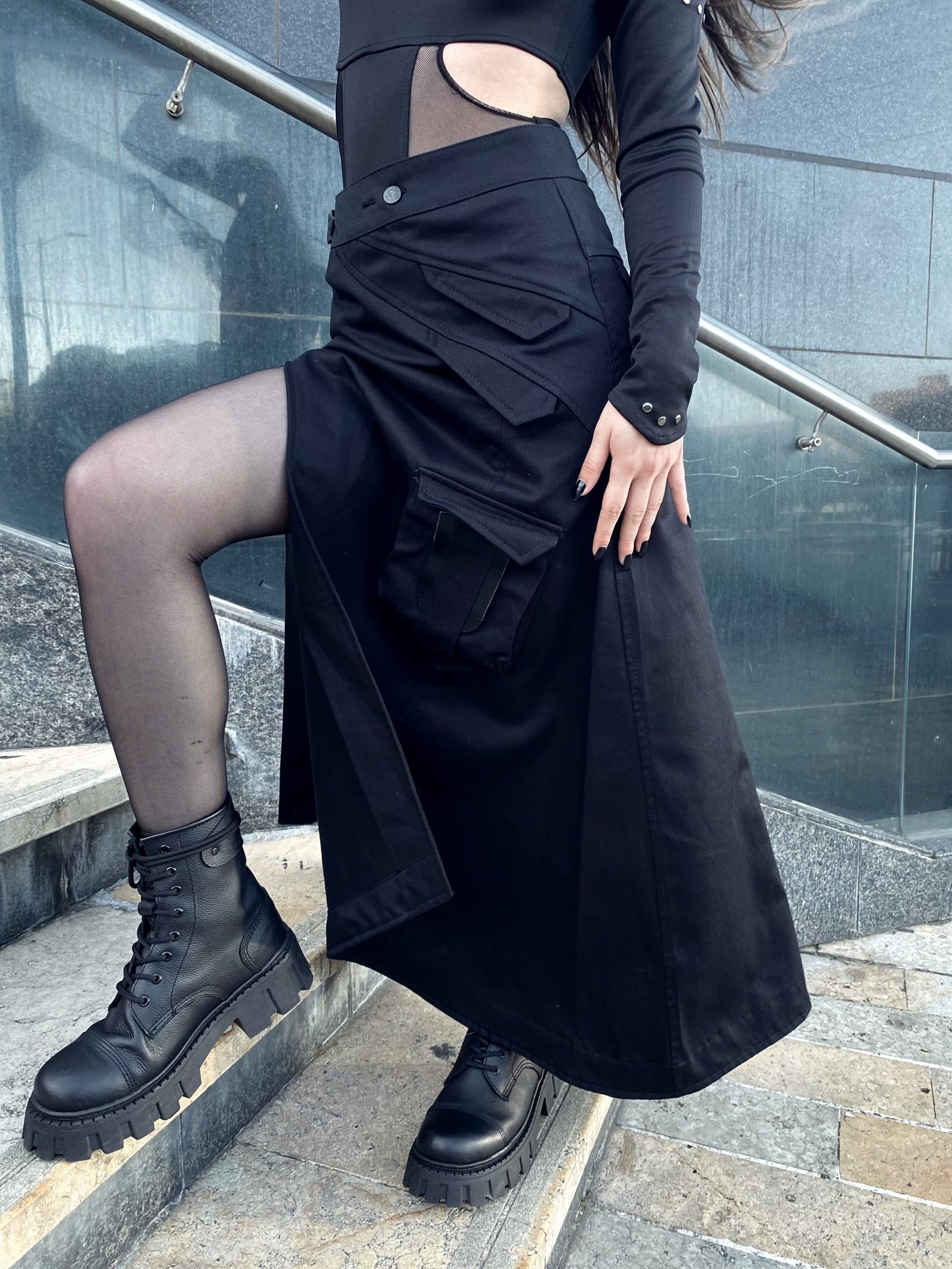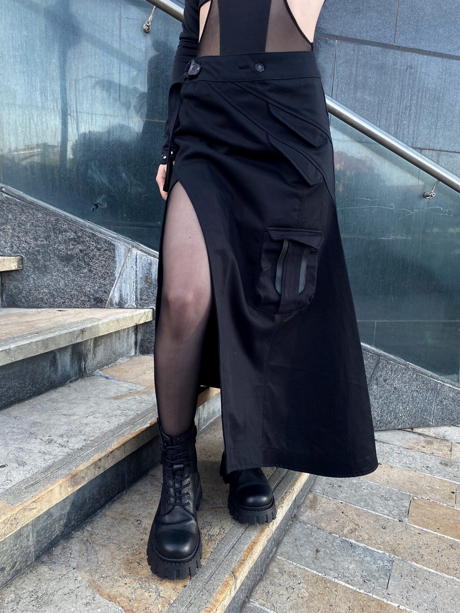 - 1 bolsillo lateral tipo cargo con detalles en base cuero