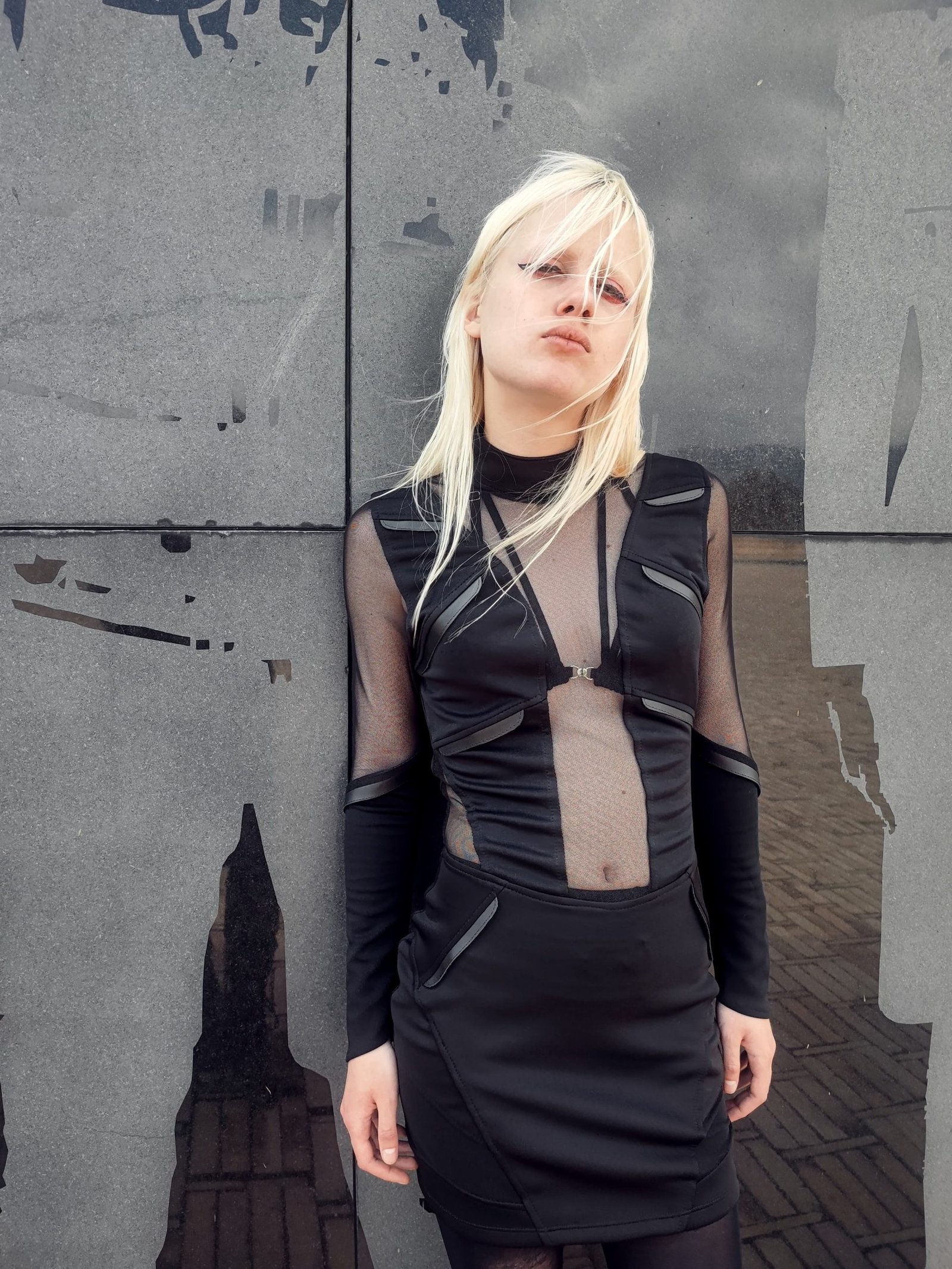 • Materiales:scuba (95% poliéster 5% spandex),malla textil (100% poliéster