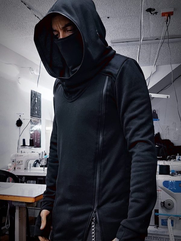 • Hoodie largo semipesado con cortes, pliegues  y detalles en cuerina textil  con abertura inferior.